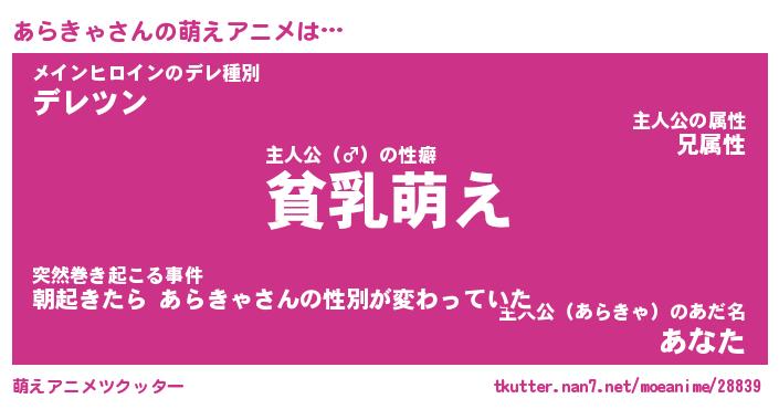 | 男性向けラノベタイトル風あだ名 | 『あらきゃの憂鬱』 |
