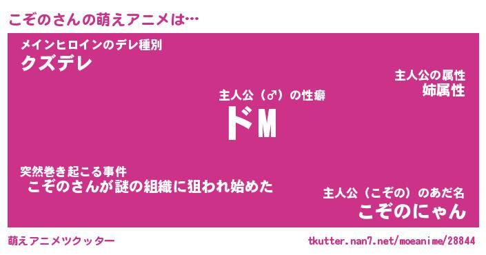 | 男性向けラノベタイトル風あだ名 | 『こぞのの憂鬱』 |