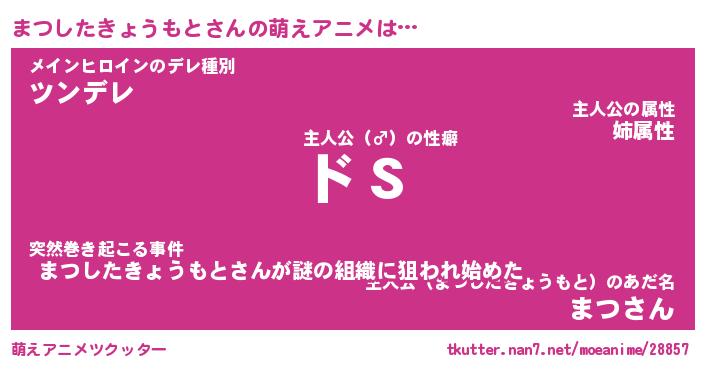 | 女子向けラノベタイトル風あだ名 | 『(仮)まつしたきょうもとのやんごとなき事情』 |