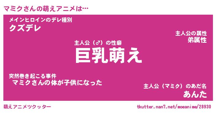 | 男性向けラノベタイトル風あだ名 | 『マミクの憂鬱』 |