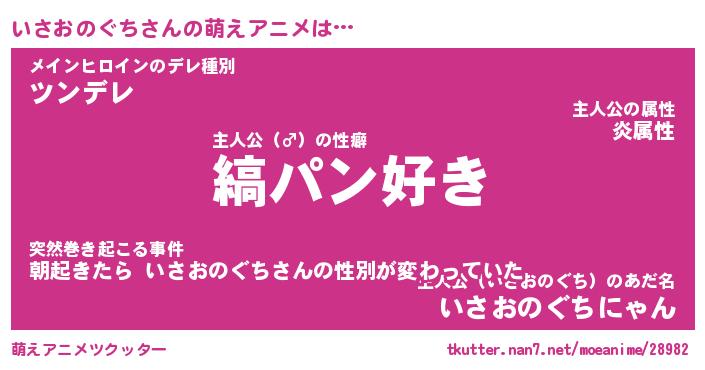 | 男性向けラノベタイトル風あだ名 | 『いさおのぐちの憂鬱』 |