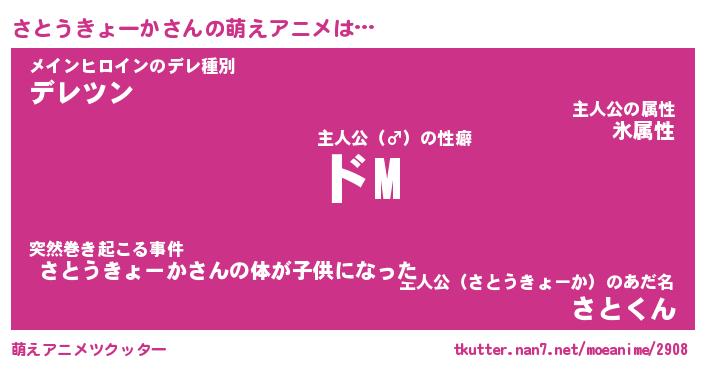 | 男性向けラノベタイトル風あだ名 | 『さとうきょーかの憂鬱』 |