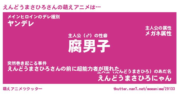 | 男性向けラノベタイトル風あだ名 | 『エンドウマサヒロアートオンライン』 |