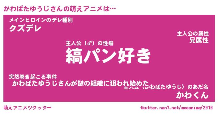 | 男性向けラノベタイトル風あだ名 | 『かわばたゆうじの憂鬱』 |