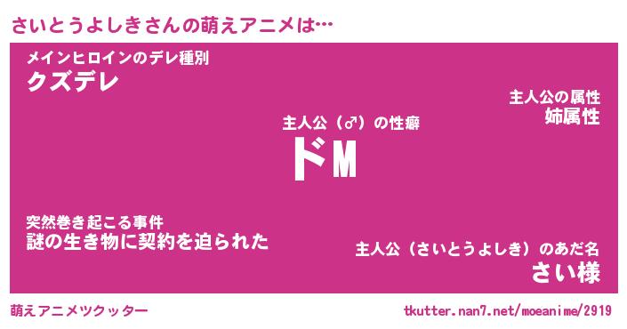 | 女子向けラノベタイトル風あだ名 | 『(仮)さいとうよしきのやんごとなき事情』 |
