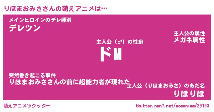 | 男性向けラノベタイトル風あだ名 | 『りほまおみさの憂鬱』 |