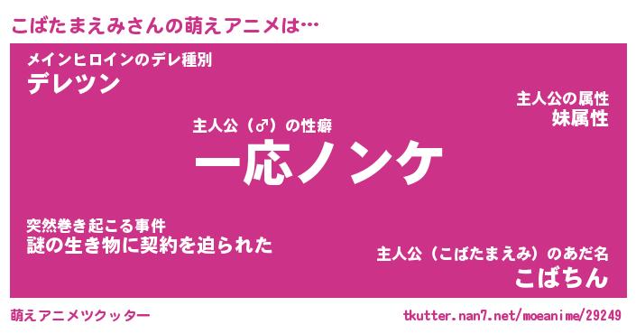 | 男性向けラノベタイトル風あだ名 | 『コバタマエミアートオンライン』 |