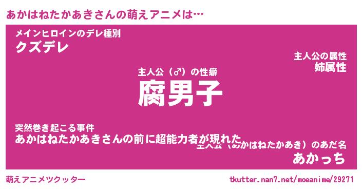 | ヘコむあだ名 | 『あかにー』『つくし』『あか太郎』 |