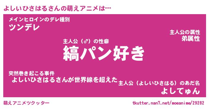 | 女子向けラノベタイトル風あだ名 | 『(仮)よしいひさはるのやんごとなき事情』 |