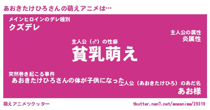 | 男性向けラノベタイトル風あだ名 | 『あおきたけひろの憂鬱』 |