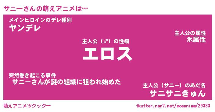 | 女子向けラノベタイトル風あだ名 | 『誰かこのサニーを説明してください! ~契約から始まるウェディング~』 |