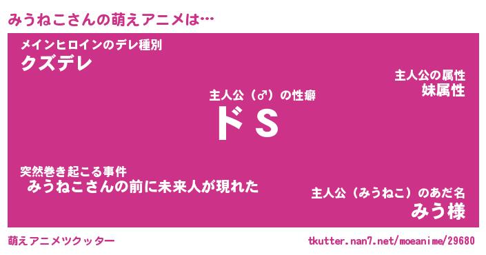 | 男性向けラノベタイトル風あだ名 | 『みうねこの憂鬱』 |