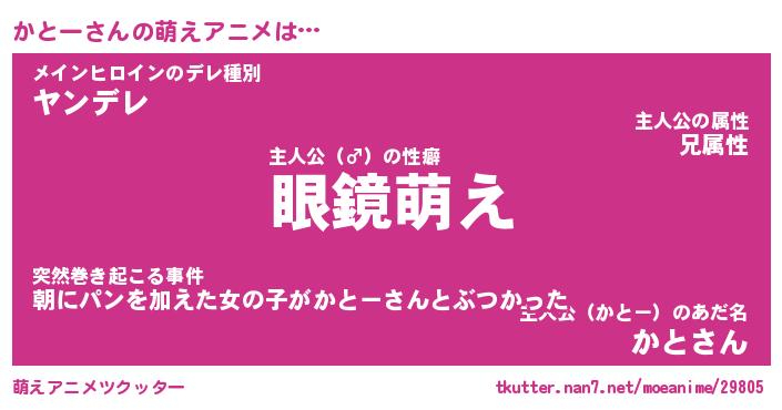 | 男性向けラノベタイトル風あだ名 | 『かとーの憂鬱』 |