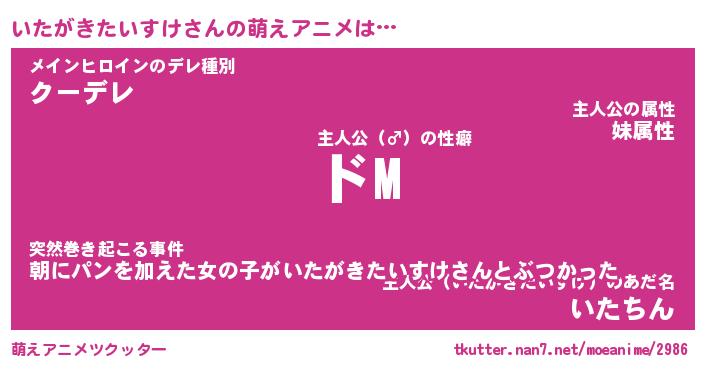 | 男性向けラノベタイトル風あだ名 | 『いたがきたいすけの憂鬱』 |