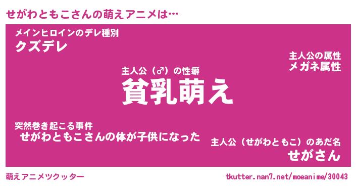 | 男性向けラノベタイトル風あだ名 | 『せがわともこの憂鬱』 |
