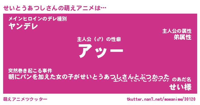 | 男性向けラノベタイトル風あだ名 | 『セイトウアツシアートオンライン』 |