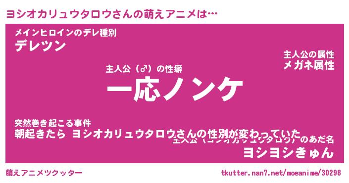 | 女子向けラノベタイトル風あだ名 | 『誰かこのヨシオカリュウタロウを説明してください! ~契約から始まるウェディング~』 |
