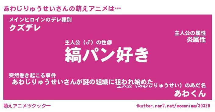| 男性向けラノベタイトル風あだ名 | 『あわじりゅうせいの憂鬱』 |
