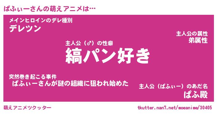 | 男性向けラノベタイトル風あだ名 | 『ぱふぃーの憂鬱』 |