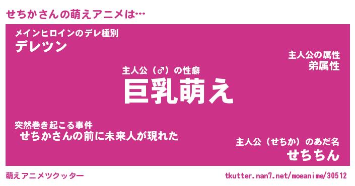 | 男性向けラノベタイトル風あだ名 | 『せちかの憂鬱』 |