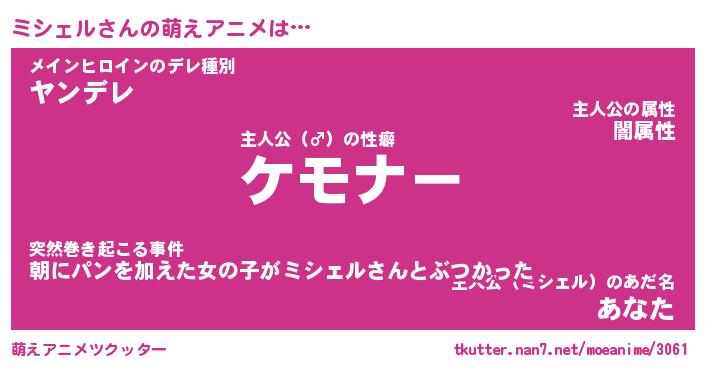 | 意味不明あだ名 | 『ペロリンミシェル』『永久保存ミシェル』 |