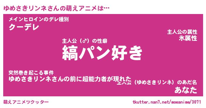 | 胡散臭い通販商品みたいなあだ名 | 『必ず成功するブレスレット…その名も「ゆめさきリンネ」』 |