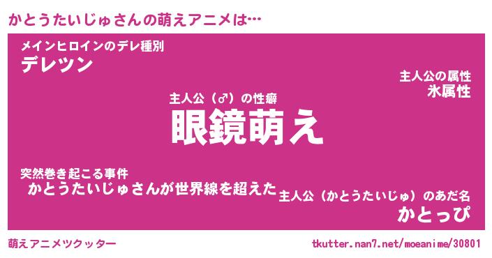| 男性向けラノベタイトル風あだ名 | 『かとうたいじゅの憂鬱』 |