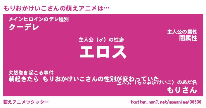 | 女子向けラノベタイトル風あだ名 | 『誰かこのもりおかけいこを説明してください! ~契約から始まるウェディング~』 |
