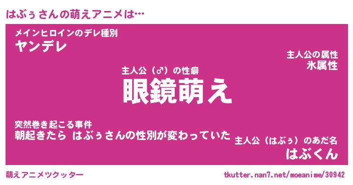 | 男性向けラノベタイトル風あだ名 | 『はぶぅの憂鬱』 |