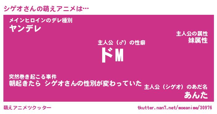 | 女子向けラノベタイトル風あだ名 | 『(仮)シゲオのやんごとなき事情』 |
