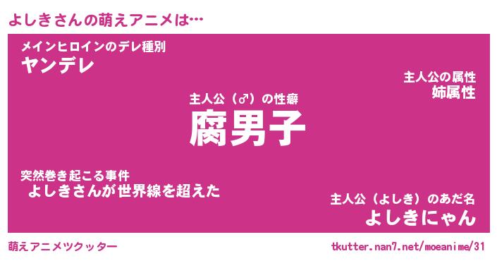 | ヘコむあだ名 | 『よしもー』『なまこ酢』『よしを』 |
