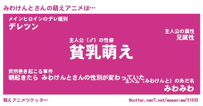 | 男性向けラノベタイトル風あだ名 | 『みわけんとの憂鬱』 |