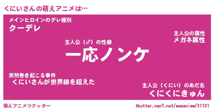 | 男性向けラノベタイトル風あだ名 | 『クニイアートオンライン』 |