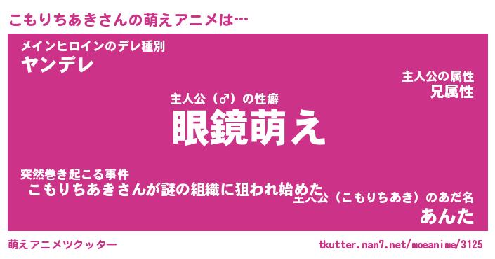 | ヒーロー風カッコイイあだ名 | 『スーパーコモリチアキ』『天弓騎士コモ』 |