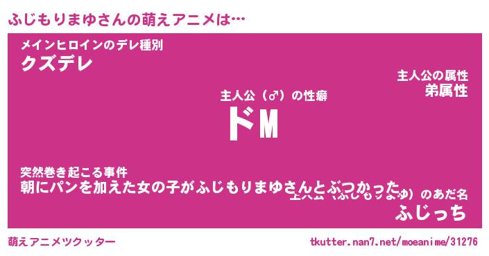 | 女子向けラノベタイトル風あだ名 | 『(仮)ふじもりまゆのやんごとなき事情』 |