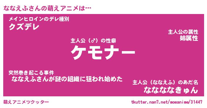 | 女子向けラノベタイトル風あだ名 | 『誰かこのななえふを説明してください! ~契約から始まるウェディング~』 |