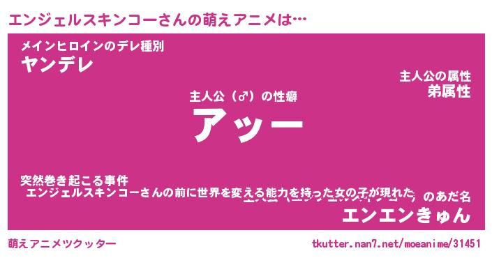 | 女子向けラノベタイトル風あだ名 | 『誰かこのエンジェルスキンコーを説明してください! ~契約から始まるウェディング~』 |