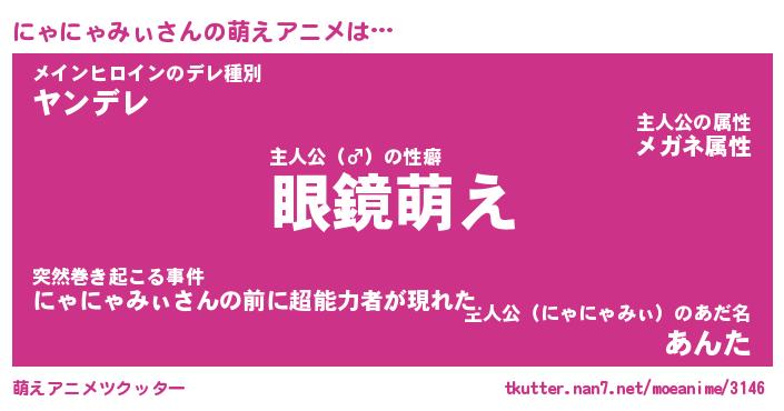 | 男性向けラノベタイトル風あだ名 | 『にゃにゃみぃの憂鬱』 |