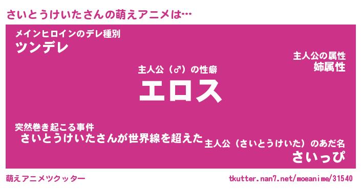 | 女子向けラノベタイトル風あだ名 | 『誰かこのさいとうけいたを説明してください! ~契約から始まるウェディング~』 |