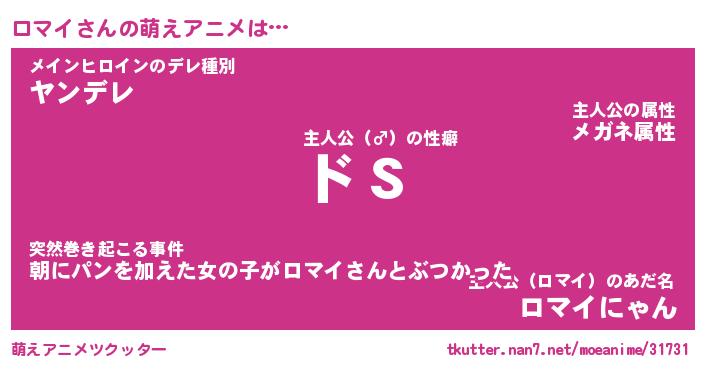 | 男性向けラノベタイトル風あだ名 | 『ロマイの憂鬱』 |
