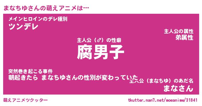 | 男性向けラノベタイトル風あだ名 | 『マナチユアートオンライン』 |