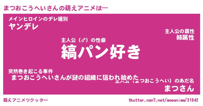 | 男性向けラノベタイトル風あだ名 | 『まつおこうへいの憂鬱』 |