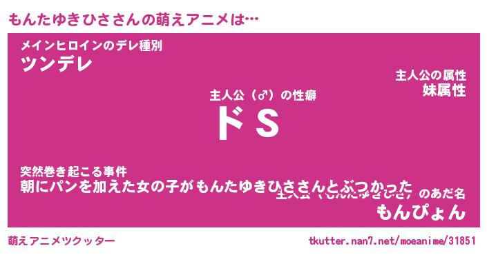 | 女子向けラノベタイトル風あだ名 | 『(仮)もんたゆきひさのやんごとなき事情』 |