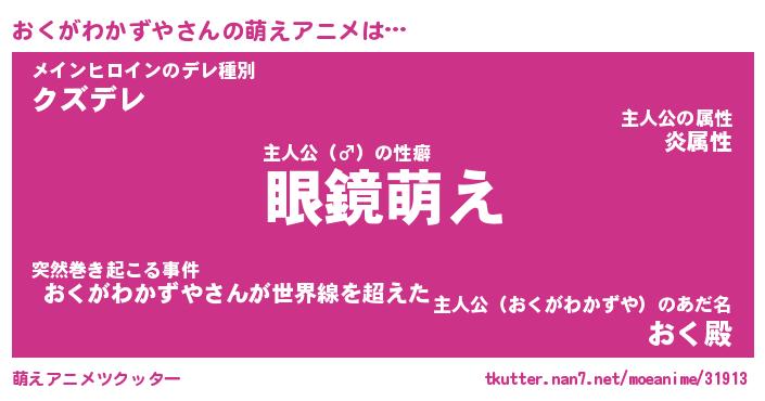 | 男性向けラノベタイトル風あだ名 | 『おくがわかずやの憂鬱』 |