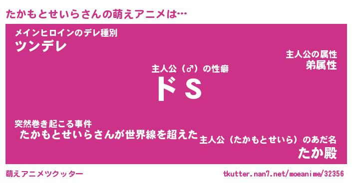 | 男性向けラノベタイトル風あだ名 | 『たかもとせいらの憂鬱』 |