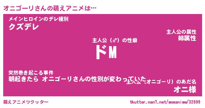 | 男性向けラノベタイトル風あだ名 | 『オニゴーリの憂鬱』 |