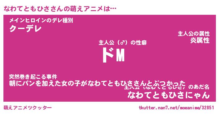 | 肩書あだ名 | 『なわてともひさ御曹司』 |