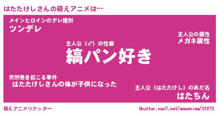 | 男性向けラノベタイトル風あだ名 | 『はたたけしの憂鬱』 |