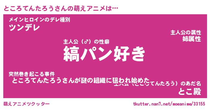 | 女子向けラノベタイトル風あだ名 | 『(仮)ところてんたろうのやんごとなき事情』 |