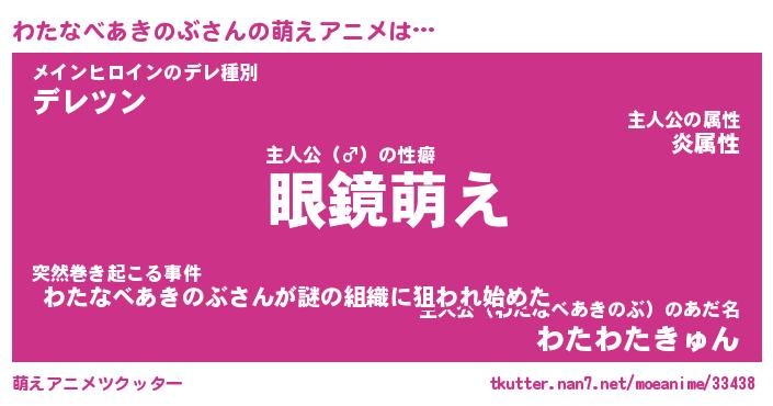 | 男性向けラノベタイトル風あだ名 | 『わたなべあきのぶの憂鬱』 |